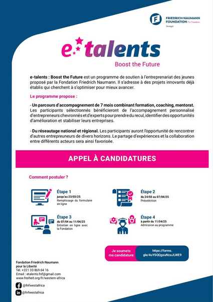 The Foundation for Freedom has had a presence in Dakar, Senegal since 1980. From here it manages most of the West- African Subregion. Senegal has experienced several peaceful transitions of power since achieving independence in 1960. It is considered the most stable country in West Africa. The Foundation focuses its work in Senegal and  in the region on the rule of law, the market economy and respect for human rights. It supports liberal political partners and selected future political leaders. It actively identifies and promotes organisations and individuals willing to take responsibility and contribute to development.